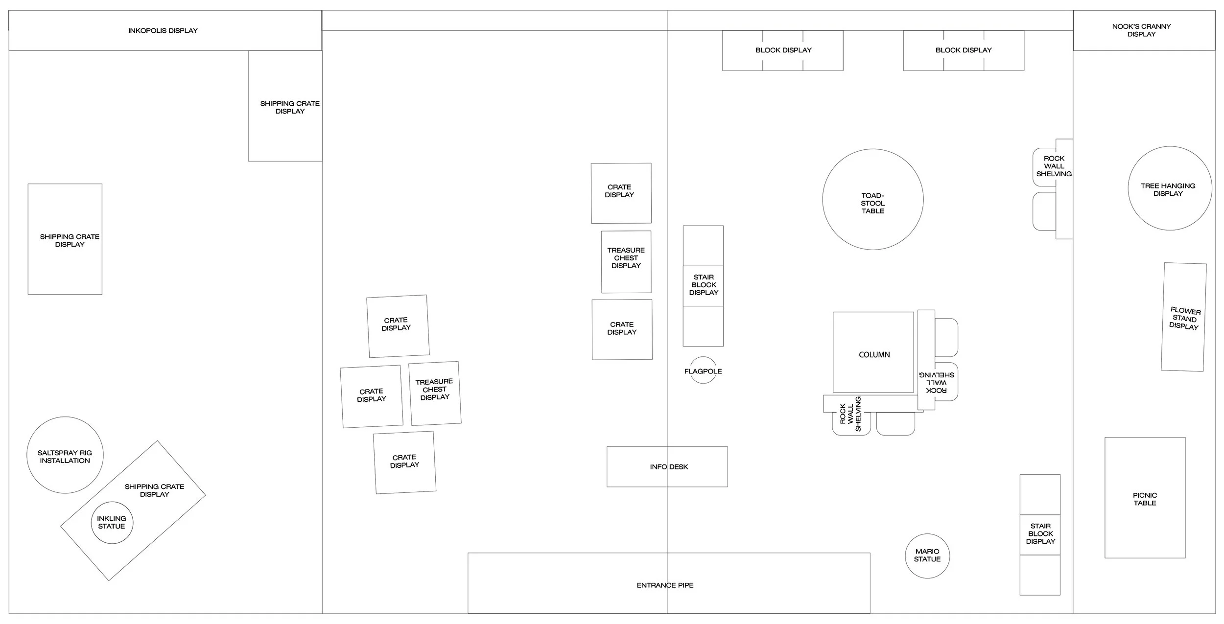 The project began with the challenge of unifying four distinct Nintendo IPs into a single, cohesive booth environment while maintaining clear brand recognition for each. Early concept development focused on zoning the space by creating dedicated areas for each IP while ensuring a seamless flow that guided attendees naturally through the booth and toward key retail touchpoints.